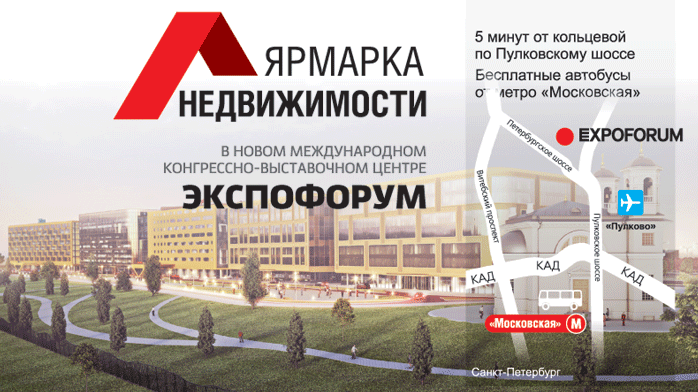 В Санкт-Петербурге состоится юбилейная 30-я выставка Ярмарка недвижимости. Мероприятие пройдет на самой современной выставочной площадке Петербурга – КВЦ «Экспофорум», расположенном на Петербургском шоссе 64/1, в 5 минутах от КАД. Все дни работы выставки от станций метро «Московская» и «Кировский завод» до выставочного центра будут курсировать бесплатные автобусы.